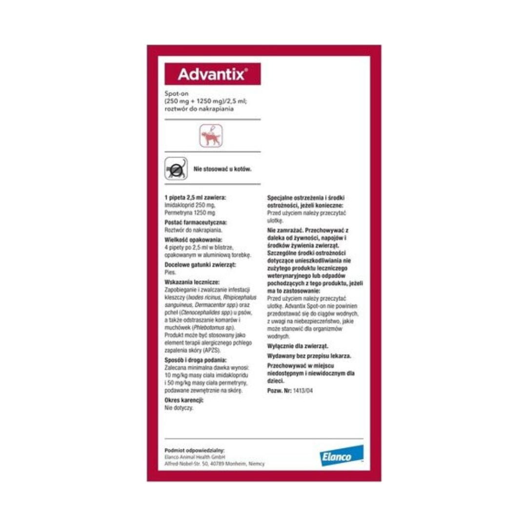 Advantix krople na pchły i kleszcze dla psa 10–25 kg – 1 pipeta 2,5 ml