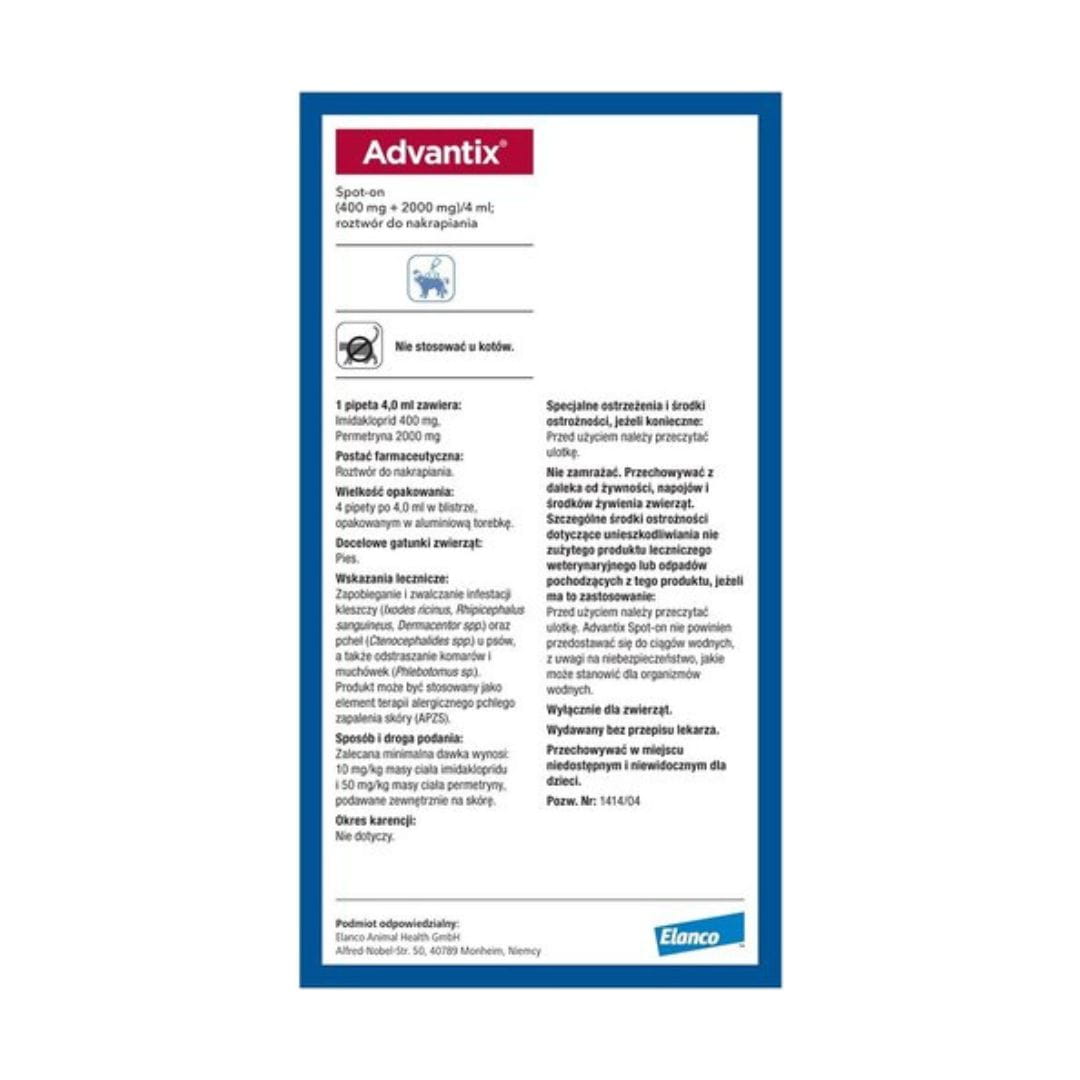 Advantix krople na pchły i kleszcze dla psa 25–40 kg – 1 pipeta 4 ml