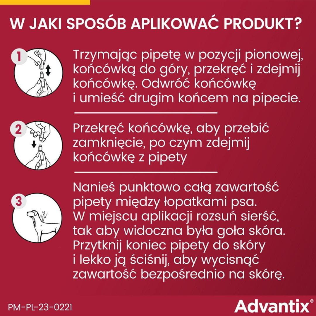 - jedna pipeta na psa o wadze 25–40 kg