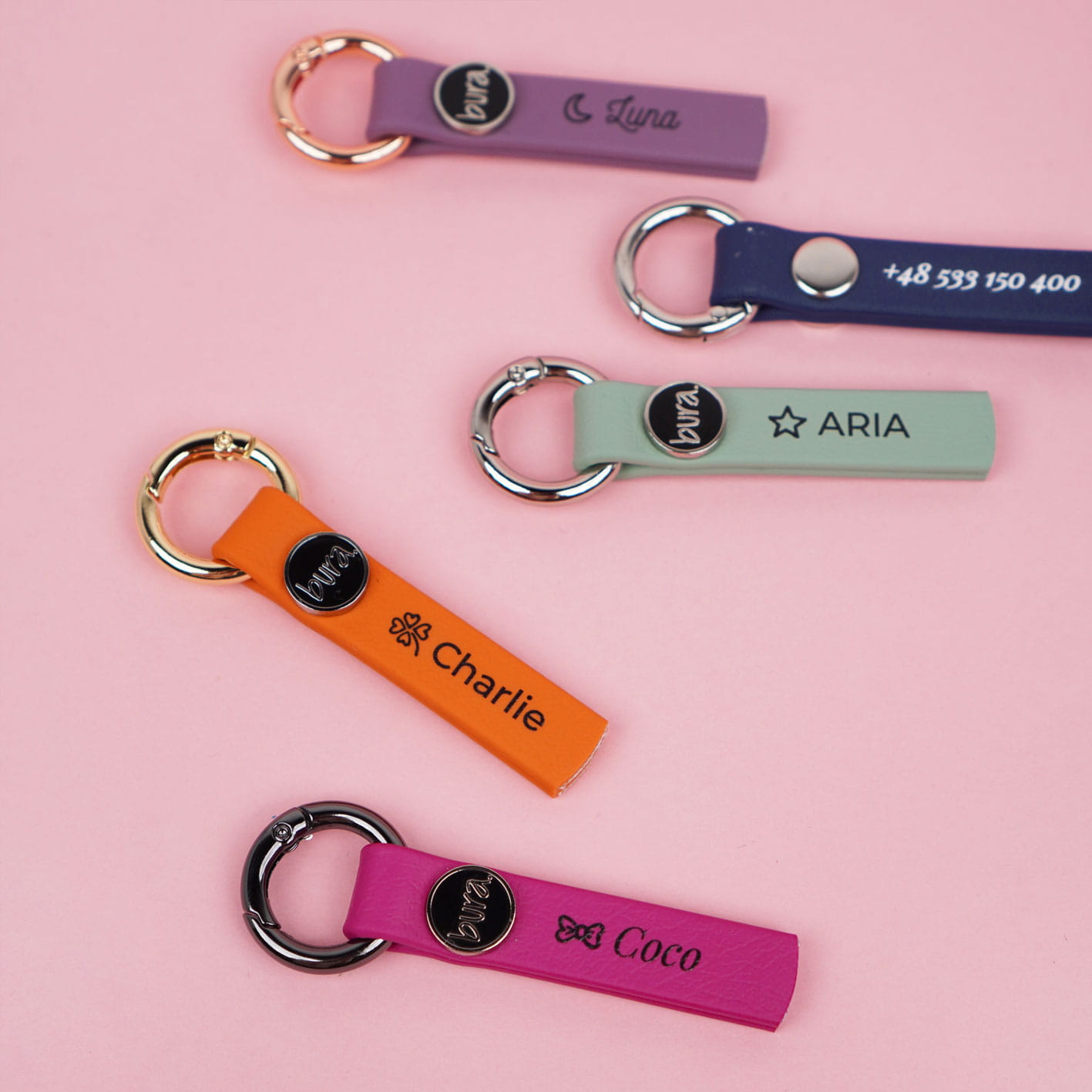 Cicha adresówka dla psa z oryginalnego tworzywa BioThane® polskiej marki BURA to nowoczesna alternatywa dla metalowych zawieszek. Wodoodporna, trwała i w pełni personalizowana – z imieniem psa i numerem telefonu. Dwustronny nadruk UV, wygodny okrągły karabińczyk oraz szeroki wybór kolorów, czcionek i piktogramów sprawiają, że to praktyczny i estetyczny wybór dla wymagających opiekunów psów.