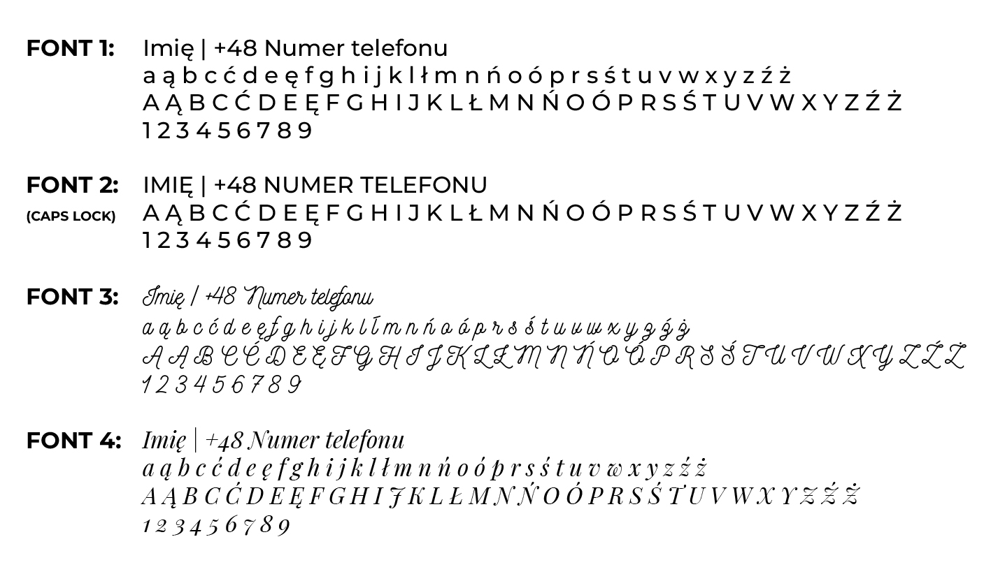- numer telefonu (ok. 3 mm wysokości cyfr)