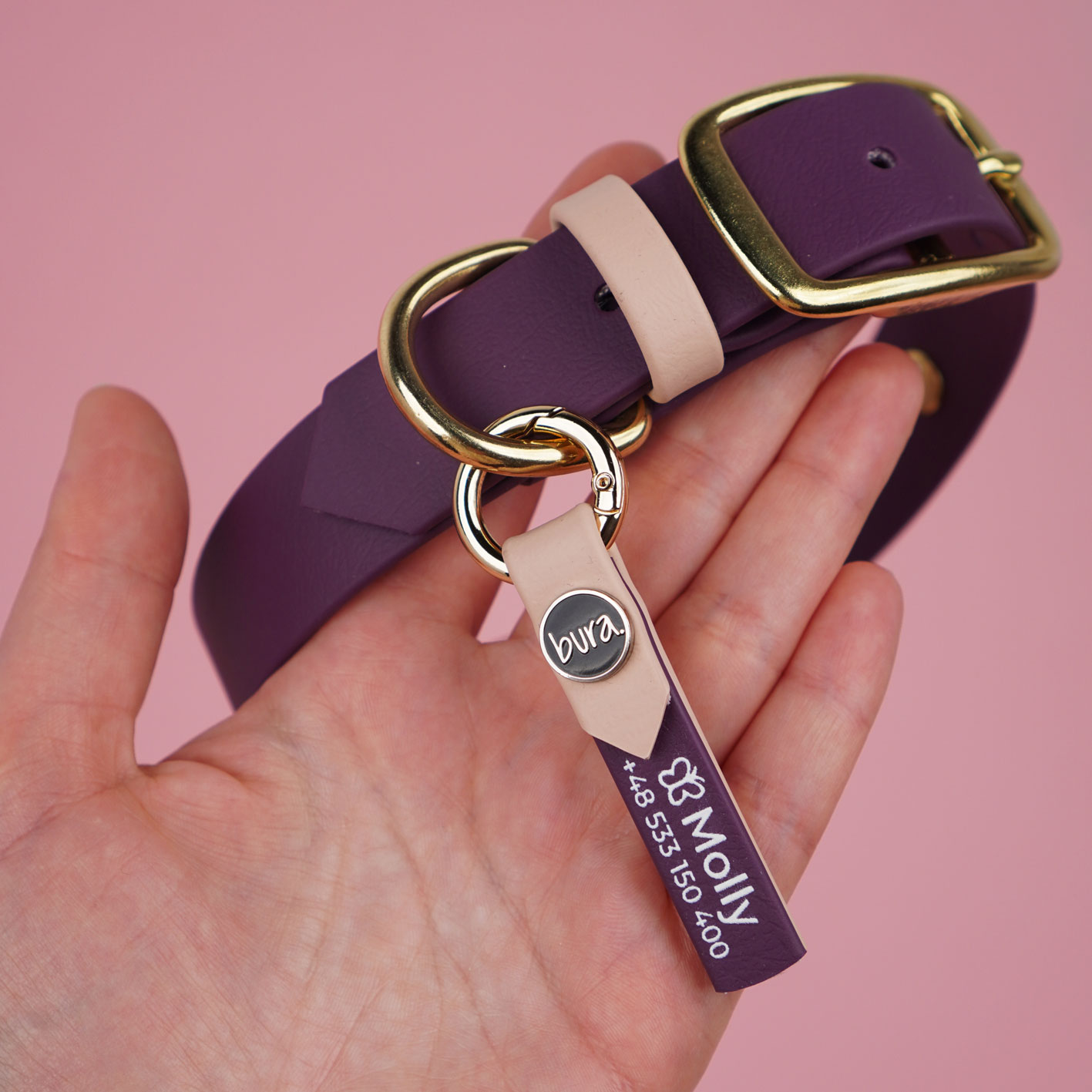 Dwukolorowa adresówka dla psa z oryginalnego BioThane® polskiej marki BURA to nowoczesna, wodoodporna i całkowicie cicha alternatywa dla klasycznych metalowych zawieszek. Personalizowana nadrukiem UV (imię + numer telefonu), przypinana na okrągłym karabińczyku do obroży lub szelek. Trwała, czytelna i wygodna w codziennym użytkowaniu – idealna dla psów aktywnych i opiekunów ceniących estetykę oraz bezpieczeństwo.