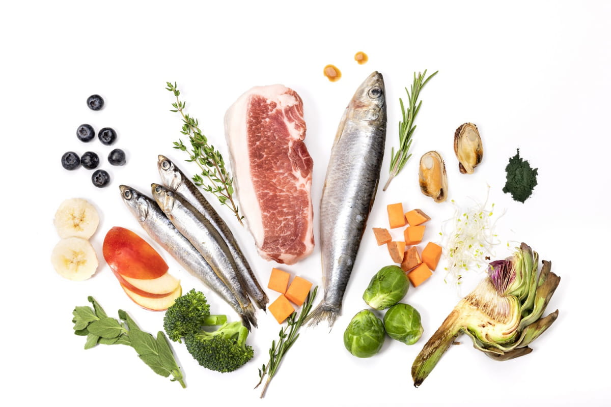 Skład: 75% świeże mięso i ryby: 45% wieprzowina Iberico, 15% sardynki, 15% anchois.