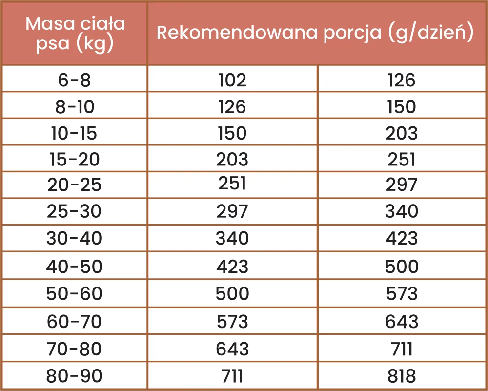 Dzienna porcja zależy od masy ciała psa: