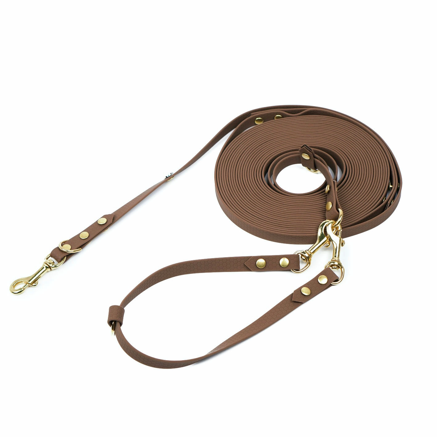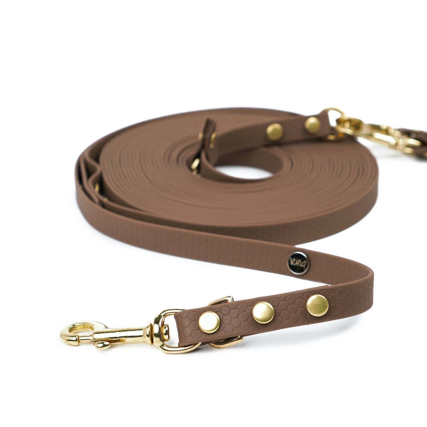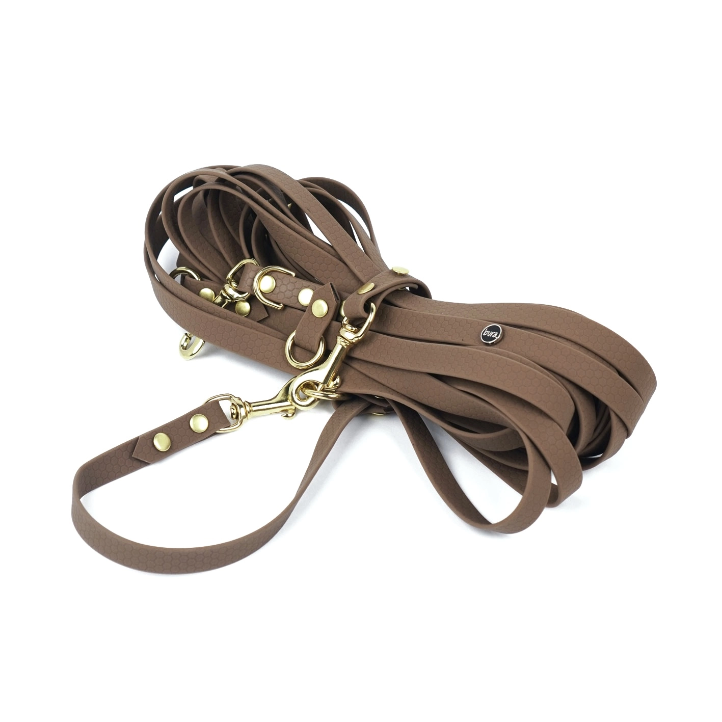 Linka treningowa dla psa HEXA brązowa BURA – wodoodporna smycz treningowa premium