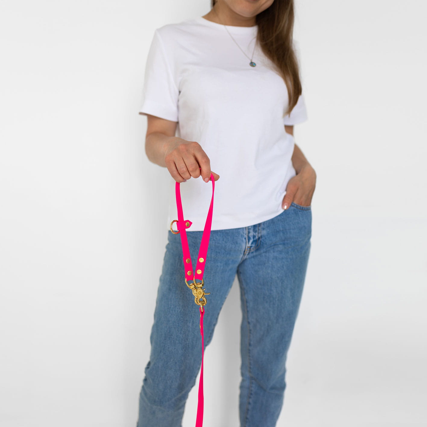 Dzięki dodatkowym elementom linkę można przypiąć do biodra lub przewiesić przez ramię, co daje pełną swobodę rąk podczas spaceru lub treningu.