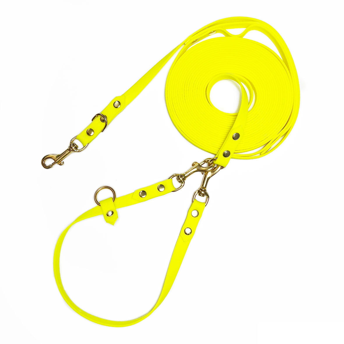 Linka treningowa dla psa HEXA neonowy żółty BURA – wodoodporna smycz treningowa premium