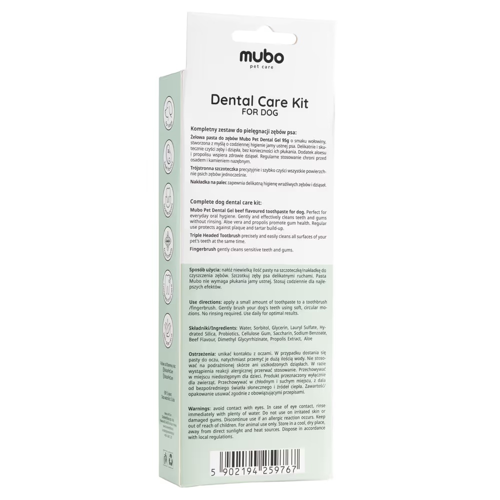 Mubo Dental Care Kit - zestaw do czyszczenia zębów psa, pasta, szczoteczka i nakładka na palec