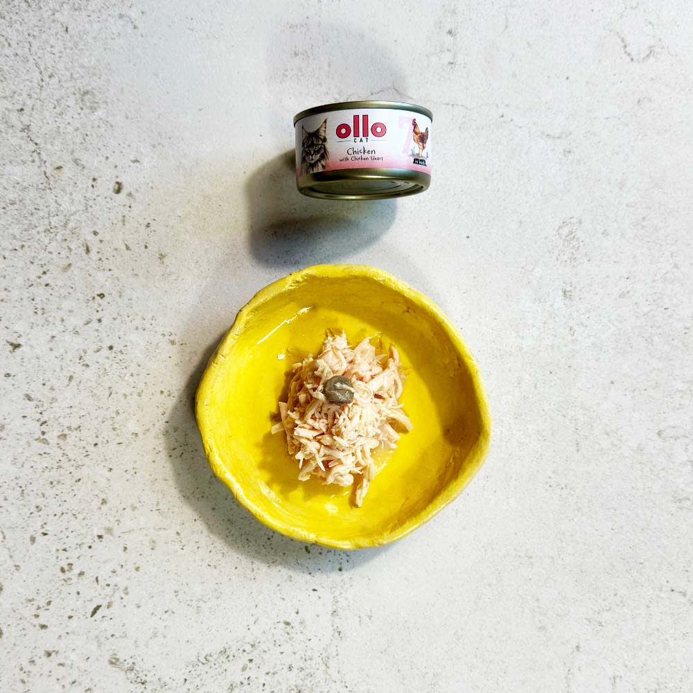 Ollo Cat Kurczak i Serca z Kurczaka 70 g to naturalna karma mokra dla kota o wysokiej zawartości mięsa (99,9%). Bezzbożowa receptura w aromatycznym bulionie wspiera nawodnienie, trawienie i zdrową sierść. Idealna dla kotów w każdym wieku.