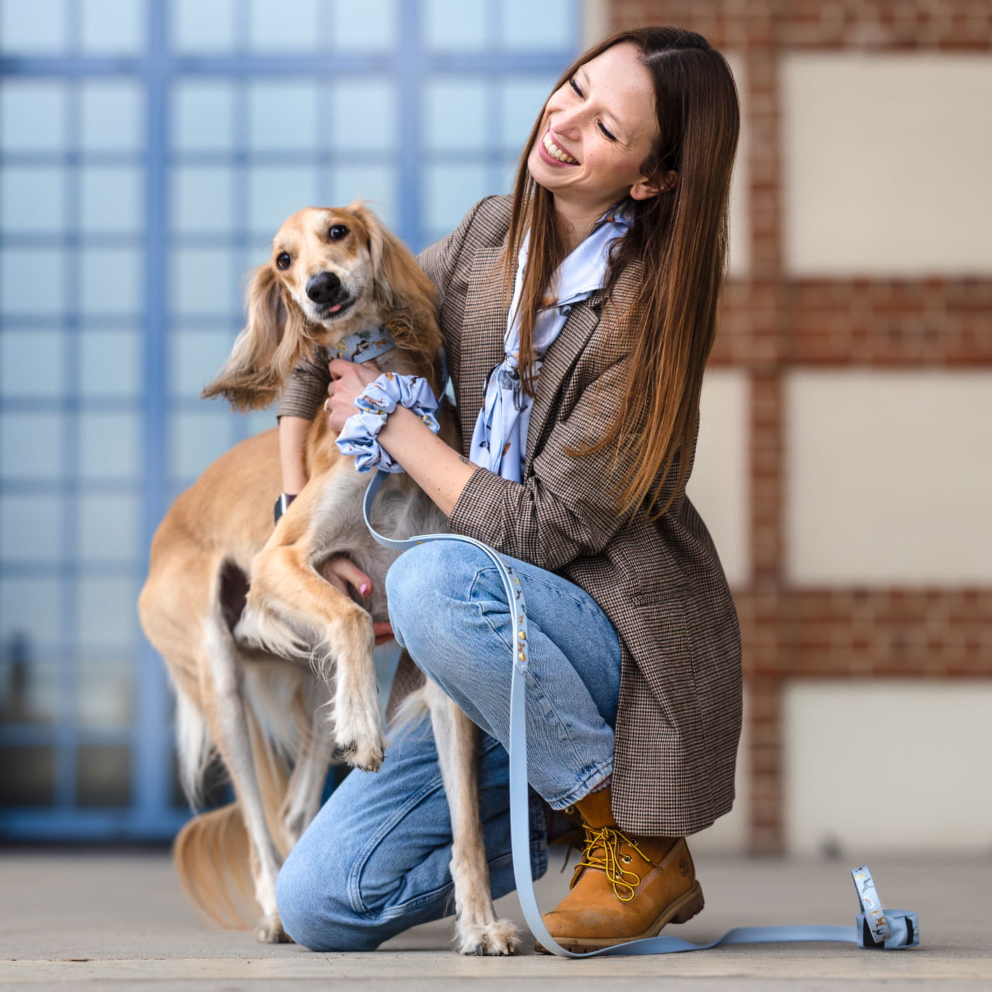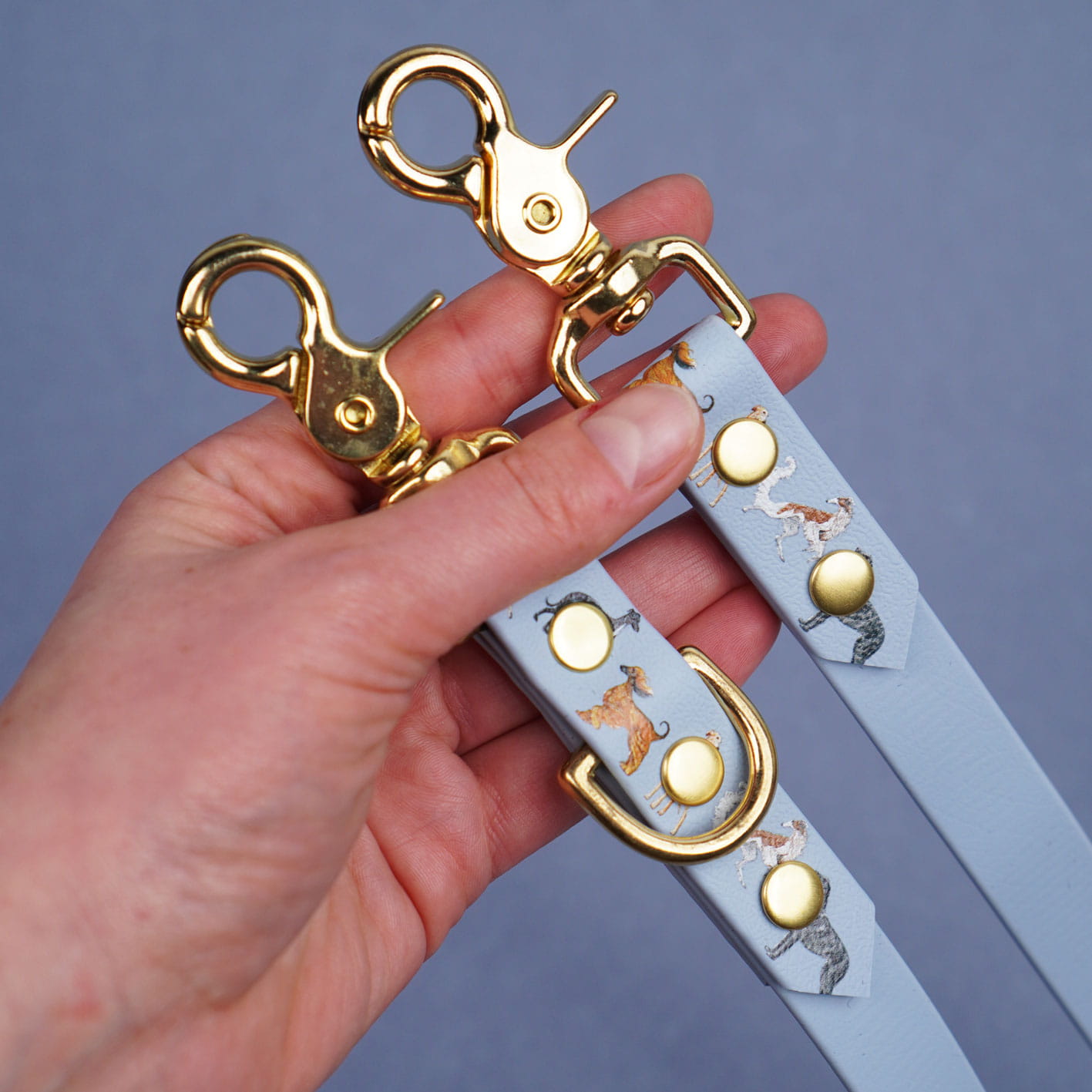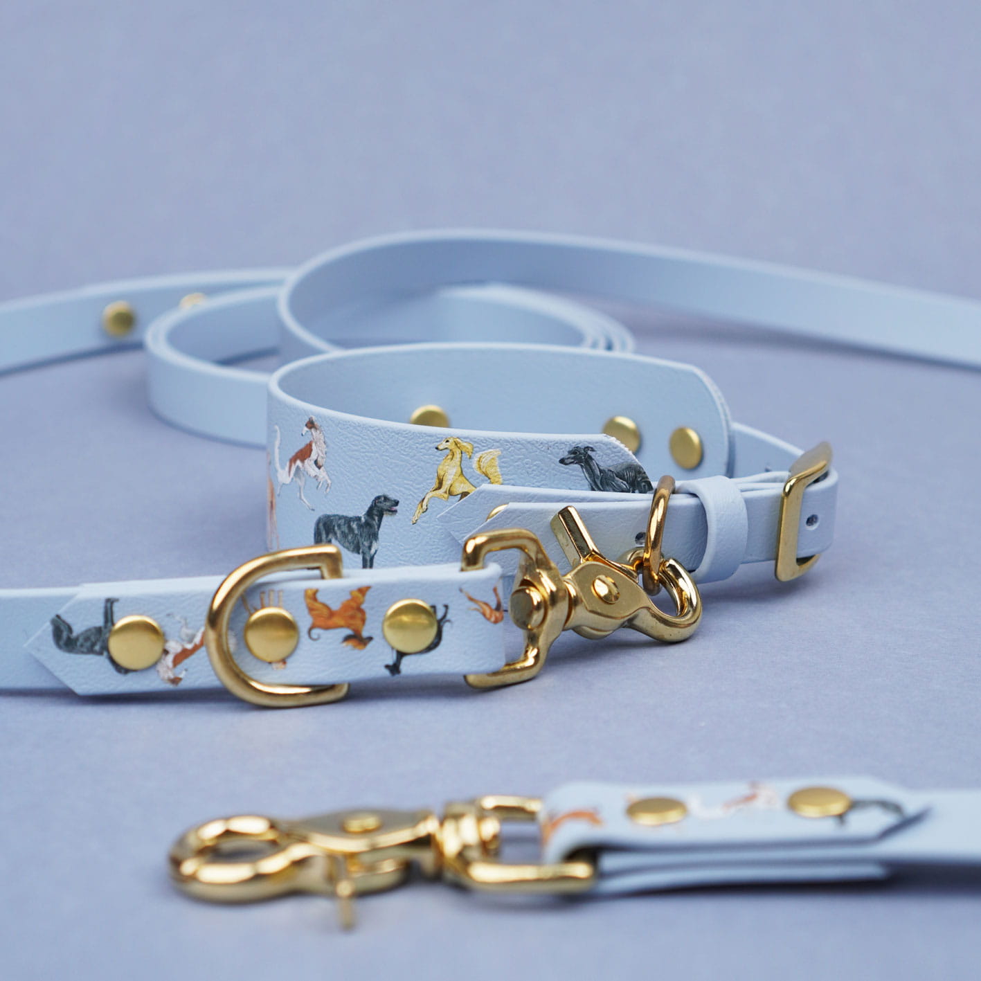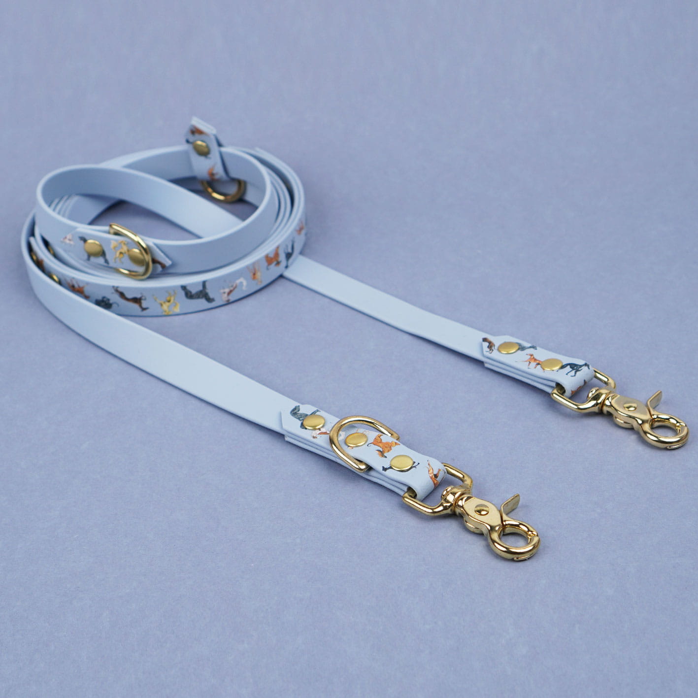 Smycz multifunkcyjna przepinana BioThane® BURA – kolor pastelowy niebieski, wzór Charty