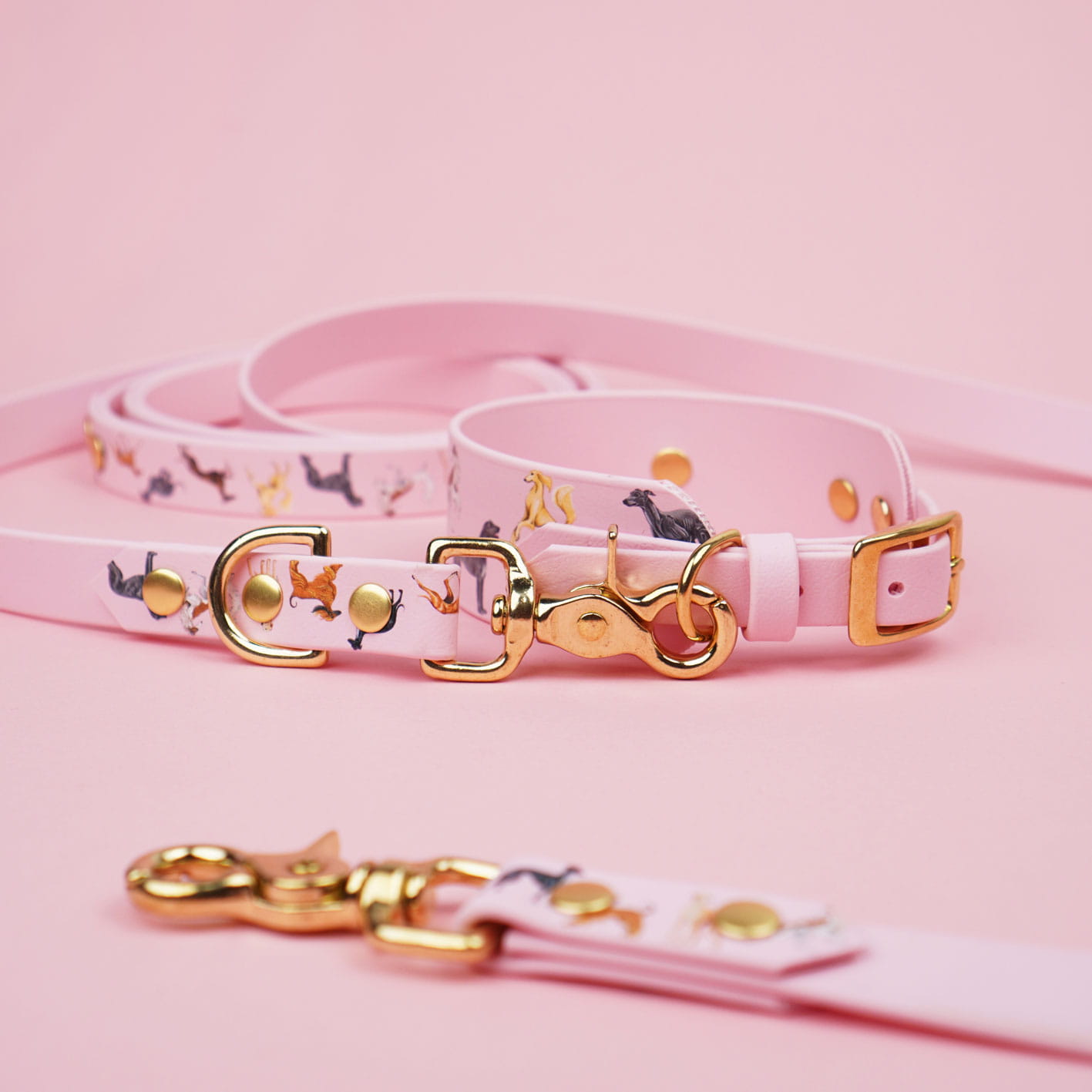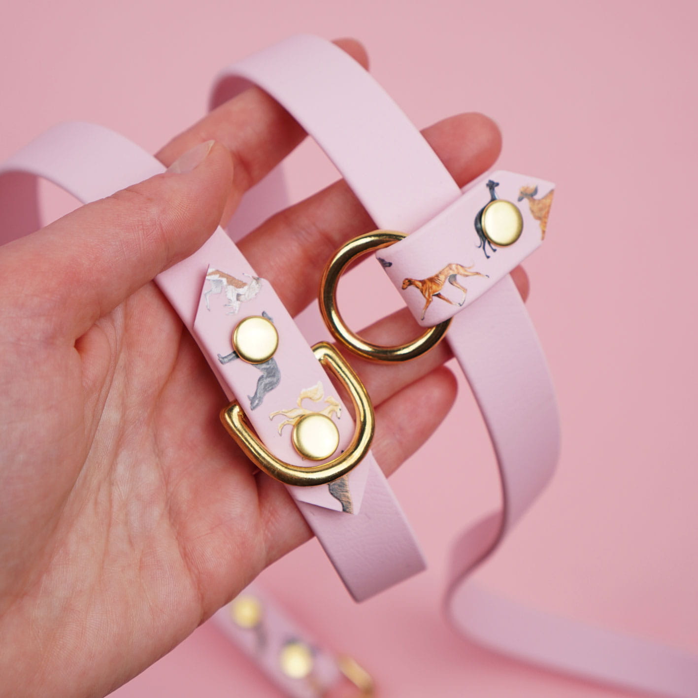 Smycz multifunkcyjna przepinana BioThane® BURA – kolor pudrowy róż, wzór Charty