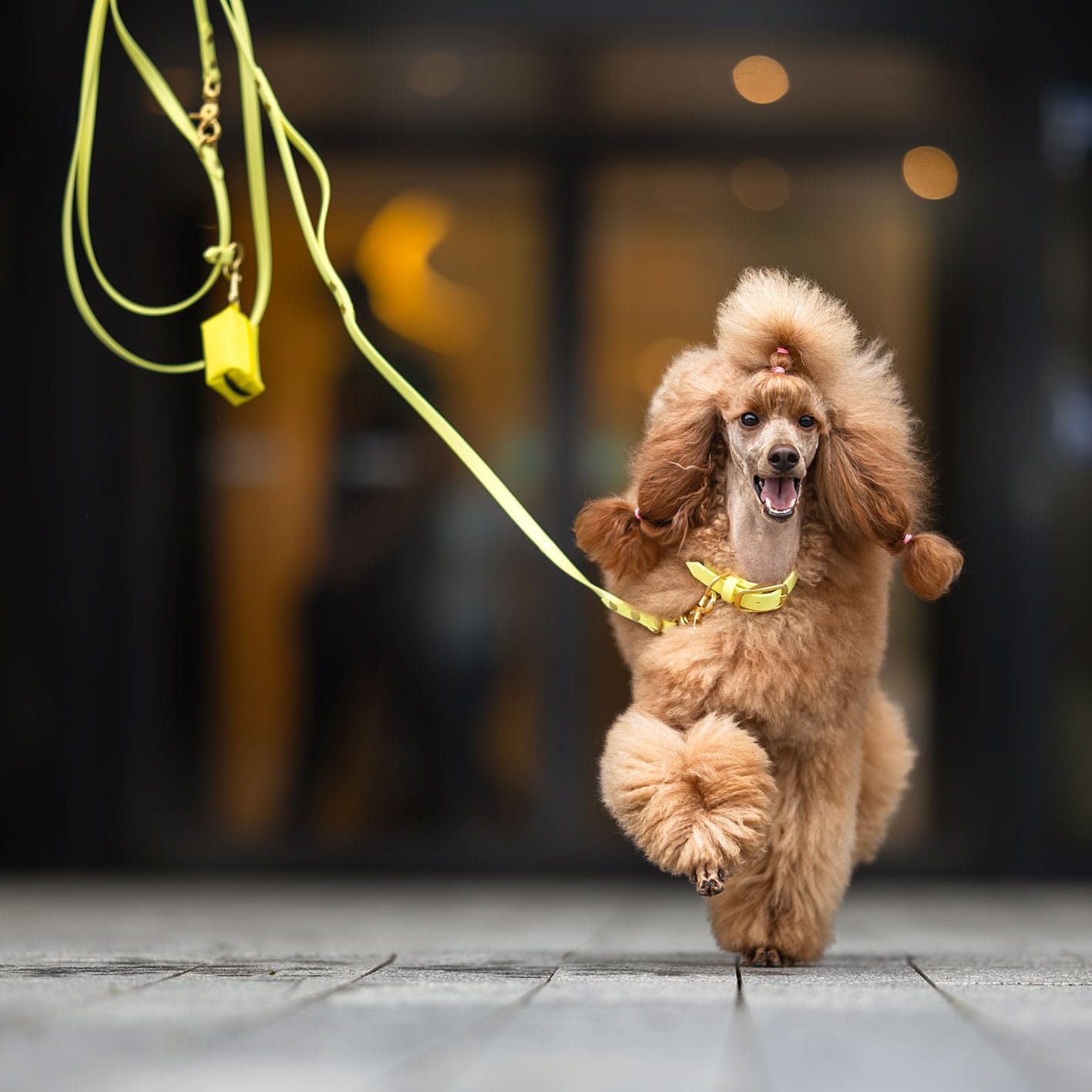 Smycz typu hands-free – można ją przypiąć w pasie lub założyć przez ramię.