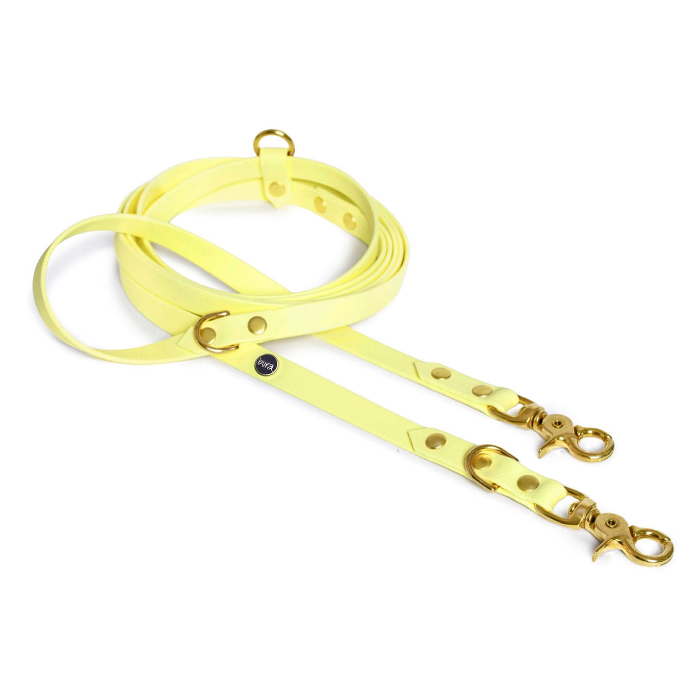 Smycz przepinana multifunkcyjna dla psa z oryginalnego tworzywa Biothane® od marki Bura, kolor pastelowy żółty