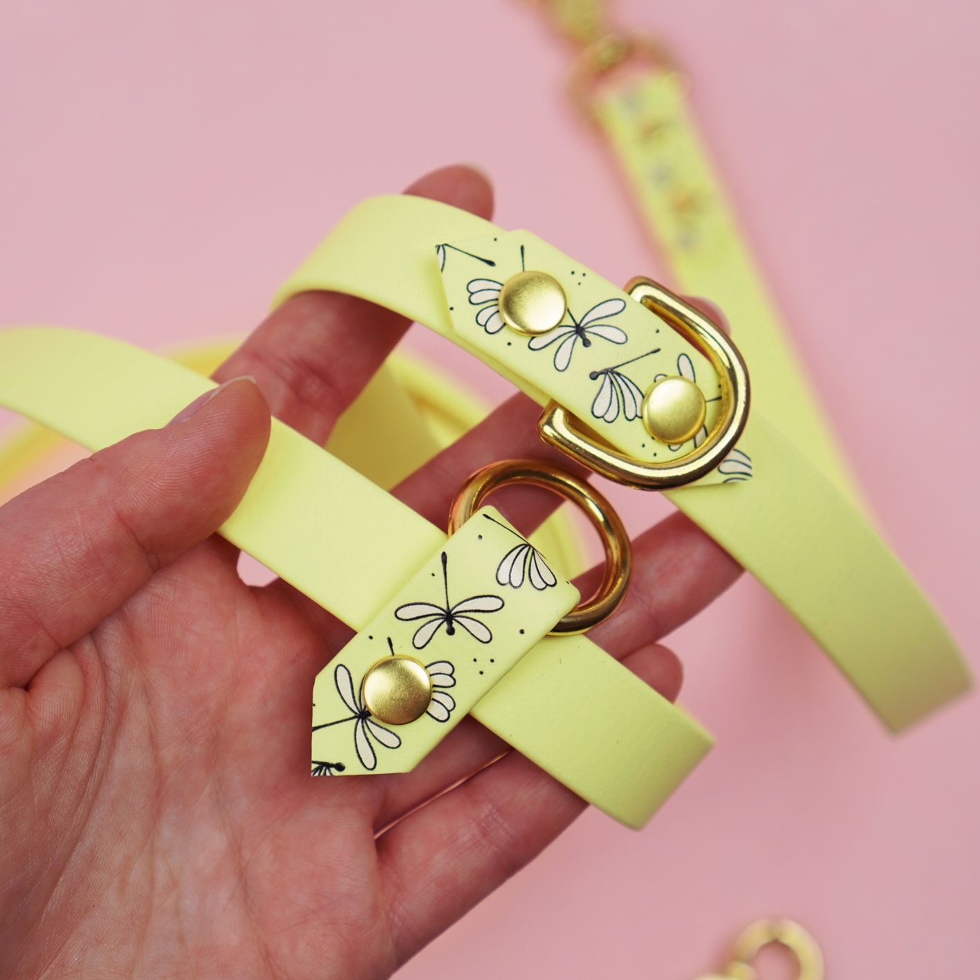 Wzór Ważki to delikatna, minimalistyczna grafika, która nadaje smyczy lekkości i wyjątkowego charakteru. To propozycja dla osób, które cenią detale i chcą wyróżnić się bez przesady.